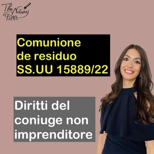 Al momento dello scioglimento della comunione legale, che natura giuridica ha il diritto del coniuge non imprenditore, sui beni in comunione de residuo destinati all’esercizio dell’impresa dell’altro? Secondo la Cassazione a Sezioni Unite, con pronuncia del 17 maggio 2022 n. 15889, la natura giuridica del diritto del coniuge non imprenditore, sui beni acquistati dall’altro in comunione de residuo, al momento dello scioglimento della comunione legale, è quella di diritto di credito pari al 50% del valore dei beni in comunione de residuo. Tale tesi è preferibile rispetto a quella della natura reale del relativo diritto per una serie di ragioni e cioè per la: