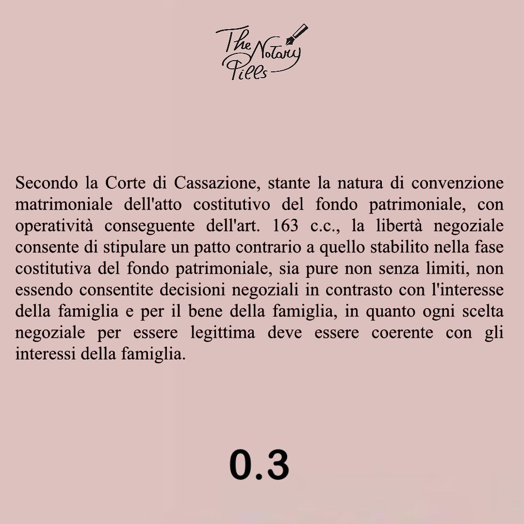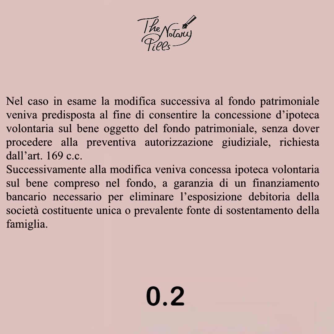 Nel caso in esame la modifica successiva al fondo patrimoniale veniva predisposta al fine di consentire la concessione d’ipoteca volontaria sul bene oggetto del fondo patrimoniale, senza dover procedere alla preventiva autorizzazione giudiziale, richiesta dall’art. 169 c.c. Successivamente alla modifica veniva concessa ipoteca volontaria sul bene compreso nel fondo, a garanzia di un finanziamento bancario necessario per eliminare l’esposizione debitoria della società costituente unica o prevalente fonte di sostentamento della famiglia. Secondo la Corte di Cassazione, stante la natura di convenzione matrimoniale dell’atto costitutivo del fondo patrimoniale, con operatività conseguente dell’art. 163 c.c., la libertà negoziale consente di stipulare un patto contrario a quello stabilito nella fase costitutiva del fondo patrimoniale, sia pure non senza limiti, non essendo consentite decisioni negoziali in contrasto con l’interesse della famiglia e per il bene della famiglia, in quanto ogni scelta negoziale per essere legittima deve essere coerente con gli interessi della famiglia. Nella fattispecie in esame, dal momento che l’introduzione successiva della possibilità di derogare all’autorizzazione richiesta dall’art. 169 c.c. per la concessione d’ipoteca sull’immobile ricompreso nel fondo patrimoniale, era preordinata al sostenimento dell’attività che costituiva forma di sostentamento per la famiglia, la modifica della convenzione matrimoniale, in assenza di preventiva autorizzazione giudiziale, doveva ritenersi legittima.
