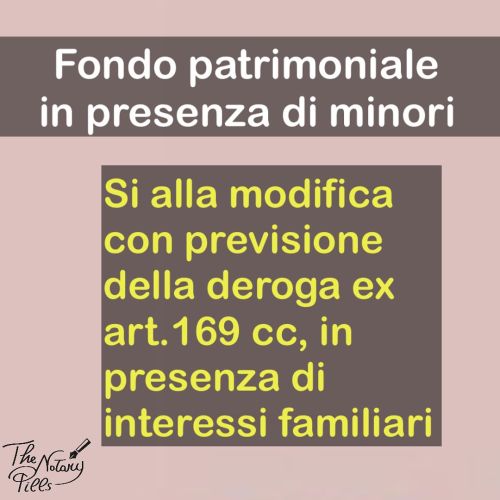 Fondo patrimoniale in presenza di figli minori e modifica successiva ex art 169 cc.