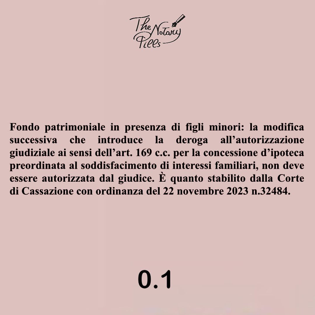 La modifica successiva del fondo che introduce la deroga all’autorizzazione giudiziale ai sensi dell’art. 169 c.c. non deve essere autorizzata dal giudice. (Cass. ordinanza del 22 novembre 2023 n.32484).