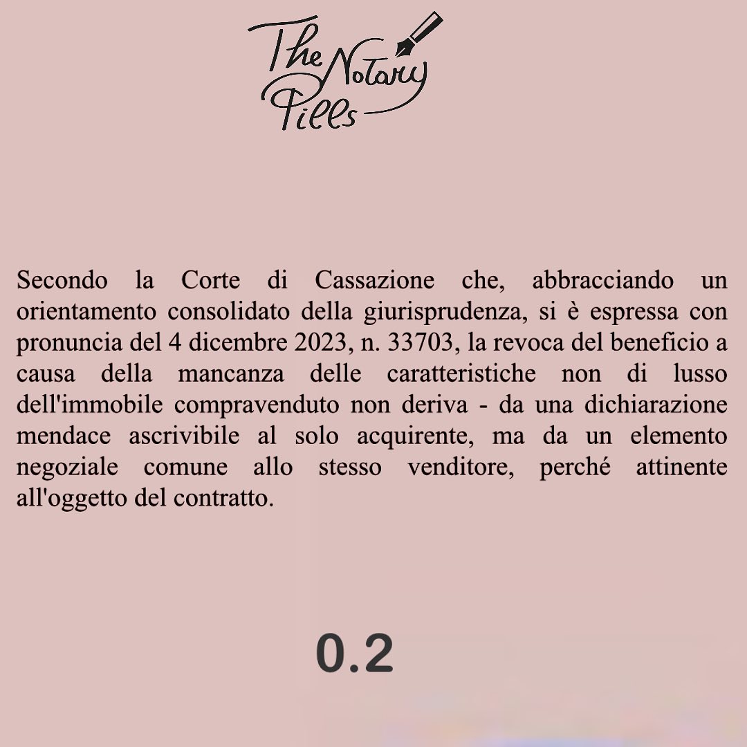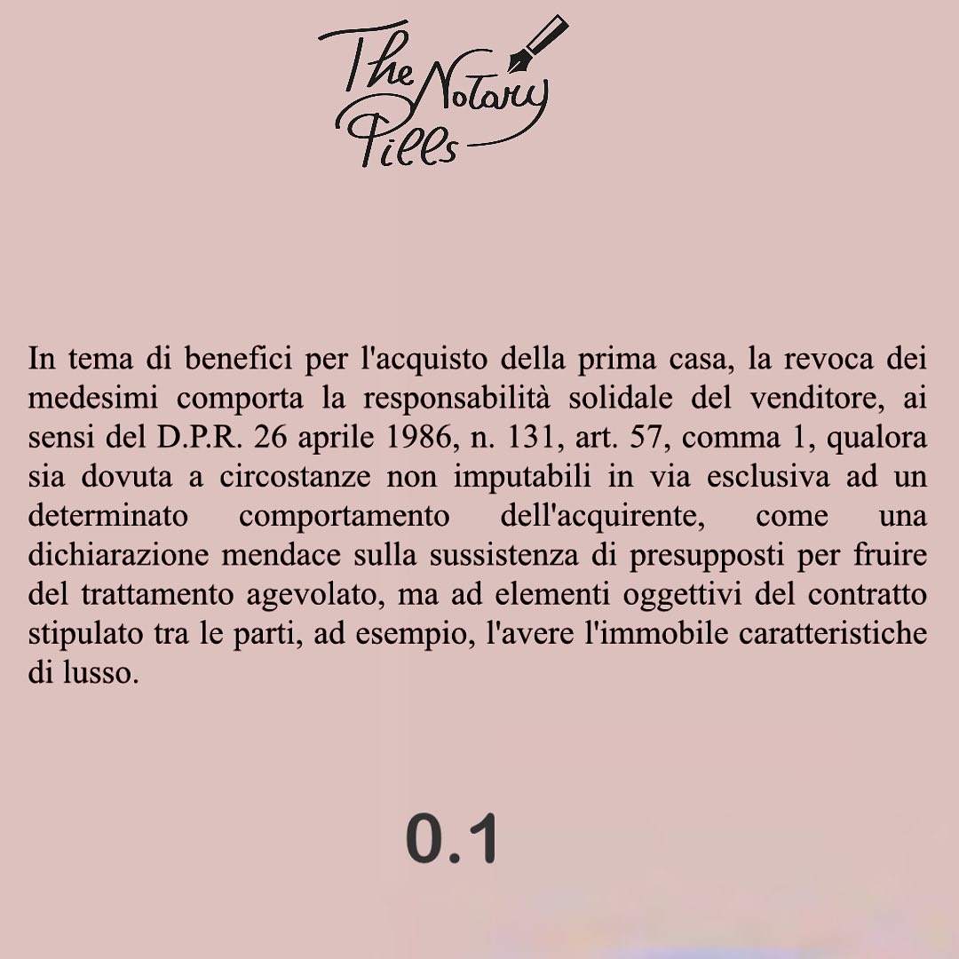 In tema di benefici per l’acquisto della prima casa, la revoca dei medesimi comporta la responsabilità solidale del venditore, ai sensi del D.P.R. 26 aprile 1986, n. 131, art. 57, comma 1, qualora sia dovuta a circostanze non imputabili in via esclusiva ad un determinato comportamento dell’acquirente, come una dichiarazione mendace sulla sussistenza di presupposti per fruire del trattamento agevolato, ma ad elementi oggettivi del contratto stipulato tra le parti, ad esempio, l’avere l’immobile caratteristiche di lusso. Secondo la Cassazione che, abbracciando un orientamento consolidato della giurisprudenza, si è espressa con pronuncia del 4 dicembre 2023, n. 33703, la revoca del beneficio a causa della mancanza delle caratteristiche non di lusso dell’immobile compravenduto non deriva – da una dichiarazione mendace ascrivibile al solo acquirente, ma da un elemento negoziale comune allo stesso venditore, perché attinente all’oggetto del contratto. E’ infatti di tutta evidenza che entrambe le parti non possono non essere a conoscenza delle specifiche caratteristiche del bene compravenduto, per cui “a prescindere dalla diretta e formale ascrivibilità all’una o all’altra parte della dichiarazione negoziale sulla sussistenza della caratteristica non di lusso dell’immobile, ne risulta che – in caso di non spettanza, ed in termini puramente oggettivi – si tratta di un’operazione per la quale è stata richiesta un’agevolazione cui non si aveva diritto, nella piena consapevolezza di ciascuna delle parti contrattuali”. Da qui la responsabilità solidale del venditore con l’acquirente in caso di revoca dei benefici medesimi.